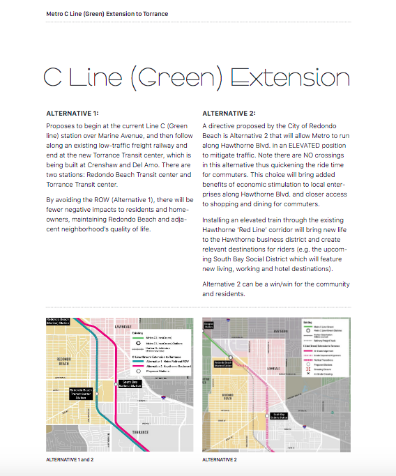 We are united neighbors urging Metro to bring the Greenline (C Line) extension through the commerce sector of Redondo Beach, not through our residential neighborhoods. It just makes the most sense. We are working hard to preserve Quality of Life in our community by advocating for the peaceful enjoyment of our residential households.
